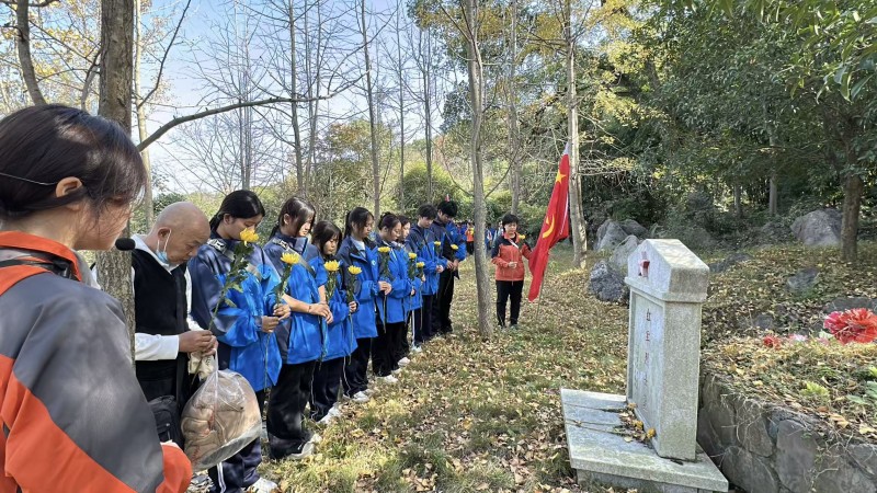 抵达隔壁山红军烈士墓群后,全体团员青年庄严肃立,向长眠于此的红军先烈敬献鲜花,鞠躬默哀。一朵朵黄色的菊花寄托着深切的缅怀,肃穆的神情彰显着对革命先辈的崇高敬意。随后,队伍前往板塘村耳木洞红军烈士墓,红色文化志愿者以“军民鱼水情”情景再现,生动还原了当年老百姓为红军送水送粮的感人场面;微党(团)课教学中,湘江战役纪念馆讲解员结合烈士事迹讲述湘江战役的历史背景,让师生们深刻理解“三年不饮湘江水,十年不食湘江鱼”背后的悲壮与荣光。