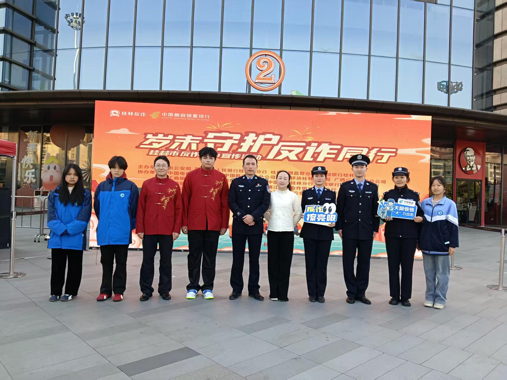 为进一步提升全民反诈意识,筑牢岁末年初安全防线,1月11日,由桂林市公安局、共青团桂林市委员会联合主办的“岁末守护 反诈同行”桂林市反诈集中宣传活动在吾悦广场盛大启动。我院汽车工程系2025级新能源汽车检测与维修专业4班师生相声作品《将反诈进行到底》受邀参演,以青春创意传递反诈声音,成为活动现场一大亮点。