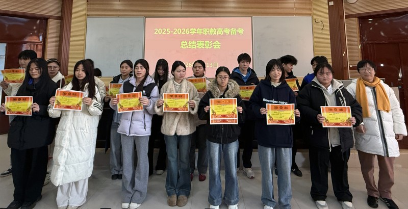 1月13日下午,学院职教高考备考总结表彰会在录播室举行。公共基础部主任何叶、授课教师、班主任及学生齐聚一堂,系统复盘备考成效,凝聚奋进力量,为2026年职教高考冲刺吹响集结号。