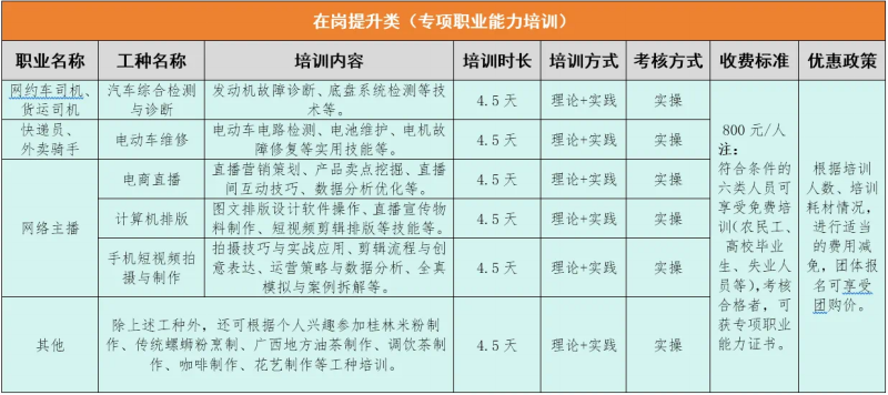 表2:在岗提升类(专项职业能力培训)