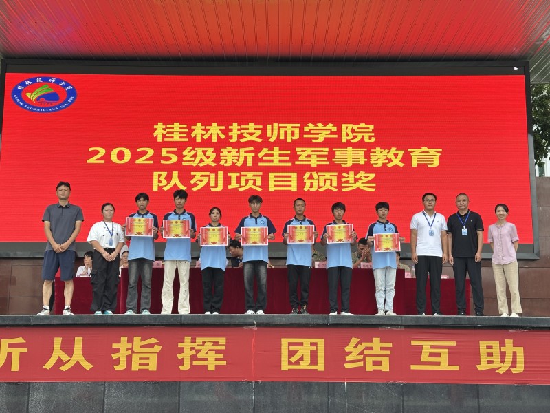 会操结束后,学院党委委员、副院长赵德元宣读《桂林技师学院关于表扬2025级新生军事教育训练先进集体与个人的决定》。此次军训中,全体新生以饱满热情、顽强意志完成训练,涌现出大批作风优良、表现突出的集体与个人,其中113名优秀标兵脱颖而出,他们的出色表现不仅为自己赢得了荣誉,也为同学们树立了榜样。在队列评比项目中,七连、十四连以严明的纪律和整齐划一的动作,荣获队列会操一等奖。