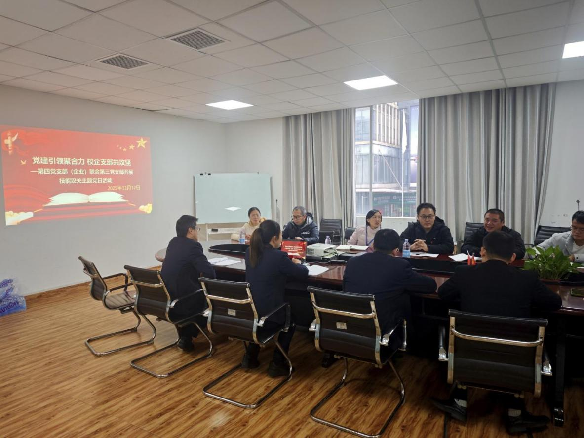 为深入推进党建与业务深度融合,搭建校企协同育人、技术攻关的“红色桥梁”,12月12日上午,学院第四党支部(东明大众4S店,校办企业)与第三党支部联合开展“技能攻关”主题党日活动。双方党员代表、技术骨干及教师代表齐聚一堂,围绕校企合作、技能提升、人才培养等议题深入交流,共谋发展。